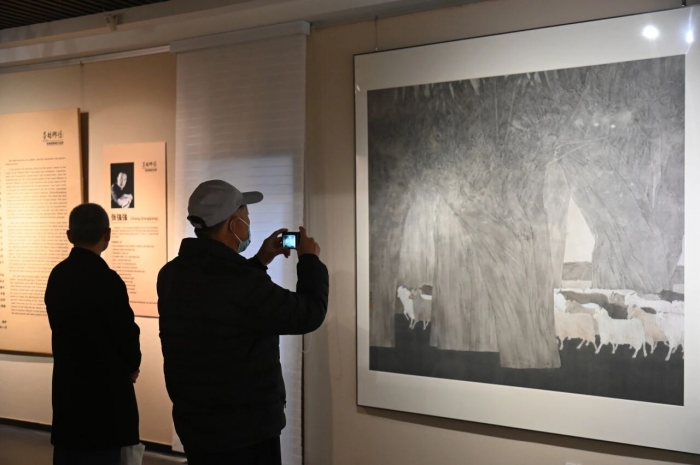 開幕式過后,現(xiàn)場嘉賓及觀眾移步至展廳參觀展覽,對張強強的作品進行了評價與交流。有專家表示,他的作品是陜北人性格的生動寫照。