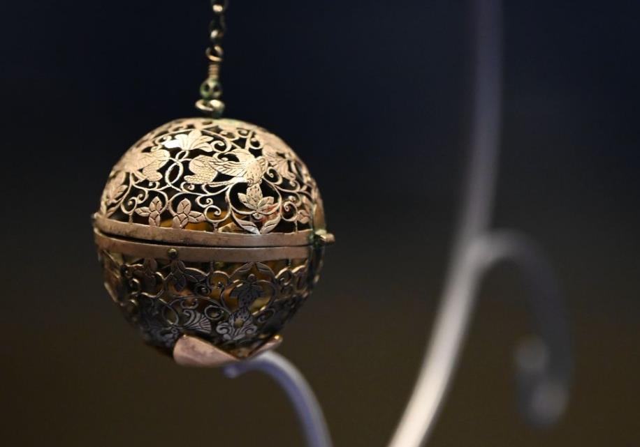 這是陜西歷史博物館的葡萄花鳥紋銀香囊。新華社記者李一博 攝 香囊外壁銀制,通體鏤空出葡萄花鳥紋樣。鏤空作為一種金銀器裝飾工藝,是在金片、銀片或者金銀器上,用刻刀按照設計的圖案花紋進行鐫刻,形成層次有別、虛實相間的紋樣。葡萄花鳥紋銀香囊采用鏤空工藝不僅有裝飾功能,也利于焚香時香氣均勻飄逸而出。 這件圓球形香囊分為內外兩層,銀質外層從中間被平分成上下兩個半球形。其中,下半部球體內由兩層同心圓機環(huán)將內層的金質香盂與外壁相連。這件香囊可以掛在車仗帷幔上或貼身佩戴,當它擺動時,內層香盂受自身重力作用,盂口始終向上,里面燃燒香料的火星、香灰不會灑落溢出。 最初,這種香器因形得名,人們將其稱之為“熏球”或“香球”。直到1987年,陜西法門寺地宮中發(fā)現(xiàn)了記錄地宮寶物的物賬碑,其上記載有唐皇室供奉的“香囊”,經過與出土實物核對,才知這種器物在唐代應稱為“香囊”。 唐代貴族生活精致,熏香文化盛行,不僅使用香囊、熏籠等熏香器具,還有塔形、豆形等多種形制的香爐。煙霧氤氳之中,小小香囊,可以祛穢除污!磅窘疱有』,銷耗胸前結舊香!痹谠娙斯P下,它也是贈別寄情的信物。端午時節(jié)佩戴香囊,還有鎮(zhèn)定心神、防蚊驅蟲的作用。 陜西歷史博物館藏品管理部主任賀達炘說,唐代社會開放包容,對外貿易繁榮,異域香料源源不斷輸入,使用香風尚更加盛行。葡萄花鳥紋銀香囊是這一時期熏香金銀器的代表器物之一,它兼具歷史性、藝術性和技術性,唐代社會生活中的儀式感、當時人們的精神追求都融入在這枚香囊之中。 新華社陜西頻道 記者:楊一苗 編輯:曉佳上一篇:老革命者朱子彤的子女向八路軍西安辦事處紀念館捐贈革命文物