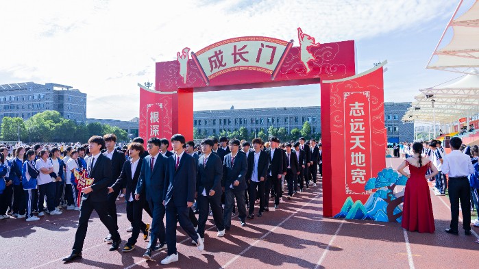 畢業(yè)典禮在音樂專業(yè)教師段亞曼深情演唱《感恩》中拉開帷幕。在班主任帶領(lǐng)下,全體畢業(yè)生以班為單位依次列隊走過 “成長門”“畢業(yè)門”后就座,高三年級科任老師及一二年級學(xué)弟學(xué)妹夾道相迎,為即將出征高考的學(xué)子們送上祝福、加油鼓勁!師生合誦詩歌《青春有夢,職教為帆》,道出了全體畢業(yè)生“今日我以母校為榮,明日母校以我為傲”的共同心聲。