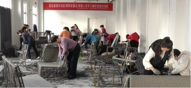 在解決脫貧戶就業(yè)的同時,寶定聯(lián)絡(luò)組還想方設(shè)法幫助剪紙工廠擴大市場,增加收入,提高市場占有率。先后與定邊西安商會簽訂了為期五年、每年不低于25萬元的剪紙藝術(shù)銷售合同;與寶應陜西商會達成了為期五年、每年不低于15萬元的剪紙藝術(shù)銷售合同。2022年,剪紙工廠已爭取年度在手訂單近200萬元。今年,剪紙藝術(shù)工廠將脫貧戶的培訓和機械化的生產(chǎn)同步進行,努力實現(xiàn)“穩(wěn)步擴大市場、穩(wěn)定就近就業(yè)、穩(wěn)妥擴大產(chǎn)能”的“三穩(wěn)”目標,并計劃在未來3年內(nèi)穩(wěn)步實現(xiàn)“占領(lǐng)省內(nèi)剪紙市場、輻射臨近省份、實現(xiàn)年產(chǎn)值過千萬”的目標。 柳編技藝:技術(shù)+市場,振興在路上 與說書、剪紙一樣,柳編技藝也是定邊的一項非遺項目。早在2008年,柳編就列入到第二批國家級非物質(zhì)文化遺產(chǎn)名錄。然而,從事這項技藝的人,也和說書、剪紙一樣,瀕臨失傳的邊緣。 針對柳編產(chǎn)品手工化、生活化程度高,流水化、市場化程度偏低的現(xiàn)狀,如何不使這項非遺技藝失傳,讓編織工廠的產(chǎn)品真正走向市場,成了擺在寶定聯(lián)絡(luò)組面前的一道難題。這時,寶應縣的揚州華瑞家居用品有限公司走進了寶定聯(lián)絡(luò)組的視野,華瑞家居是寶應一家專業(yè)從事家居產(chǎn)品生產(chǎn)的企業(yè),產(chǎn)品上百種,大部分出口歐美市場,藤編工藝的家具與柳編高度契合。聯(lián)絡(luò)組將傳統(tǒng)的柳條編織技藝,用在了家具生產(chǎn)中,只是將柳條換成了PVC環(huán)保藤條,這樣既可以傳承技藝,也有效保護環(huán)境,同時達到扶貧增收的目的。