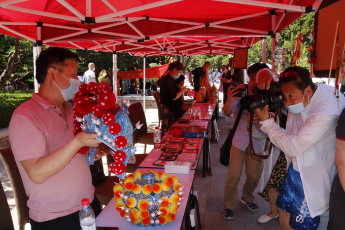 活動現(xiàn)場,秦腔板胡制作技藝、中國傳統(tǒng)裝裱修復(fù)技藝、蓮湖精巧面塑、泥叫叫制作技藝、唐三彩燒紙技藝、戲劇盔帽制作技藝、西安剪紙、陶塤手工制作技藝、陶俑燒制技藝、關(guān)中布鞋制作技藝、金魚養(yǎng)殖技藝、臨潼葫蘆彩繪技藝、臨潼毛家造像技藝、呂氏皮影雕刻技藝、古建脊獸燒制技藝、紅拳、白猿通背拳、古琴、太極、西安鼓樂、西安杖頭木偶、零口十面鑼鼓等26項非遺項目一一展示,為景區(qū)游客及老百姓們帶來了一場的文化盛宴。