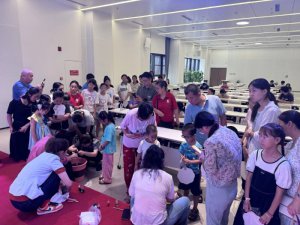 現(xiàn)場的小朋友們興致高昂,在老師的指導下制作出了一個個五彩斑斕的漆扇。家長也躍躍欲試,親自上手制作漆扇,現(xiàn)場熱鬧非凡。