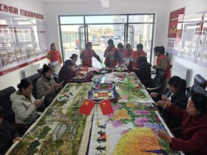 刺繡區(qū)內(nèi),白延琴女士拿著自己的刺繡作品鞋墊講道:“針腳要細(xì)密均勻,絲線顏色需漸變過(guò)渡。而且‘三細(xì)’針細(xì)、線細(xì)和心細(xì)要融為一體,才能活靈活現(xiàn)!弊屧趫(chǎng)的青年們爭(zhēng)著要買(mǎi)去當(dāng)信物。最讓人震驚的是王轉(zhuǎn)琴女士的針織佳作“清明上河圖”,以絲線勾勒汴京繁華,針腳細(xì)密再現(xiàn)市井百態(tài),人物舟橋躍然綢緞,千年古卷在彩線穿梭間煥發(fā)靈動(dòng)生機(jī)。讓眾人可遠(yuǎn)觀而不可褻玩焉。