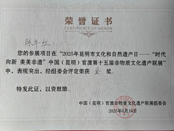 咸陽非遺項目榮獲中國(昆明)官渡第十五屆非物質(zhì)文化遺產(chǎn)聯(lián)展金獎文化藝術(shù)網(wǎng)-文化藝術(shù)報訊 (全媒體記者 齊敏)近日,從2025年昆明市文化和自然遺產(chǎn)日——“時代向新 美美非遺”中國(昆明)官渡第十五屆非物質(zhì)文化遺產(chǎn)聯(lián)展中傳來喜訊,陜西咸陽市選送的渭城區(qū)非物質(zhì)文化遺產(chǎn)項目——陳氏養(yǎng)生酒,再次榮獲金獎。