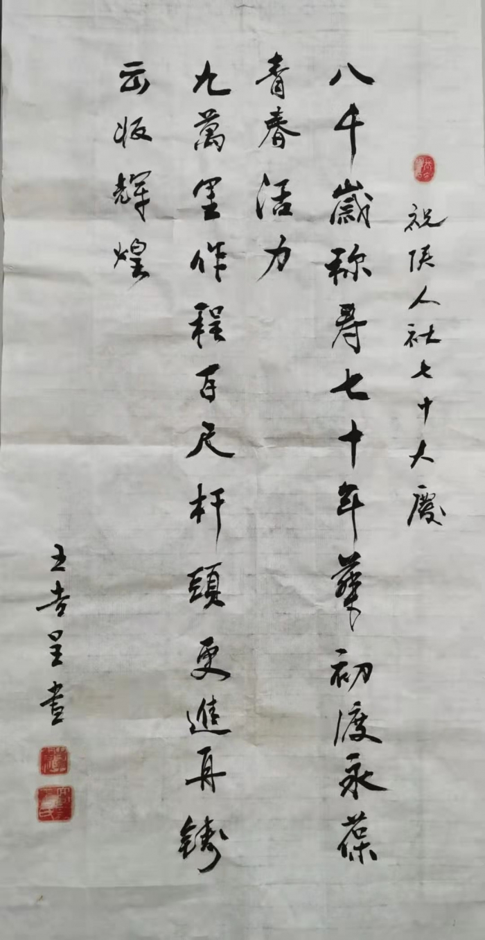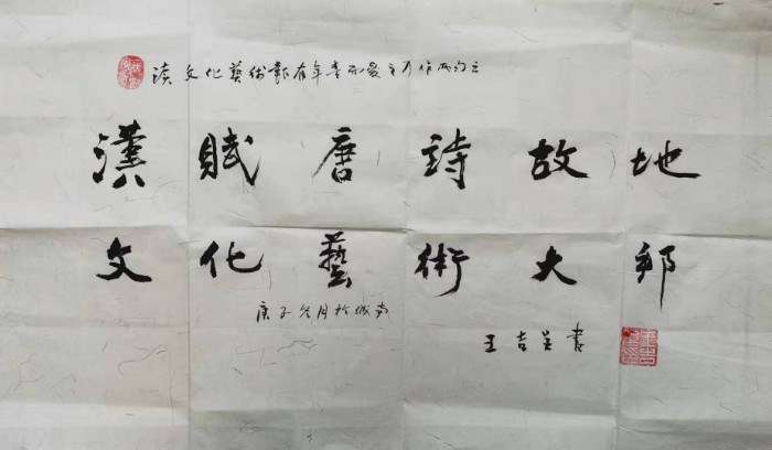 王吉呈為陜西人民出版社、文化藝術(shù)報社題賀 2020年11月底,王老的親屬張軍鋒將陜西人民出版社70周年社慶征文的消息告知后,“已經(jīng)癌癥晚期的他,躺在病榻上斷斷續(xù)續(xù)講了他與陜?nèi)松绲臏Y源。他思維和記憶如此清晰,講起與陜?nèi)松绲墓适拢绕涫桥c幾位編輯的交往時竟能忘了病痛,滔滔不絕“。他怕自己再提不起筆,再三囑軍鋒以采訪稿的形式寫出來。隨后,他的兒子、軍鋒的表哥、導演王明軍用微信發(fā)來了老人12月1日的手寫稿照片。12月12日,《文化藝術(shù)報》整版刊發(fā)王吉呈先生的《我與陜?nèi)松缤曼c滴》。2021年2月3日,《文化藝術(shù)報》發(fā)表其2020年12月寫就的文章《給吳天明弄<人生>》。
