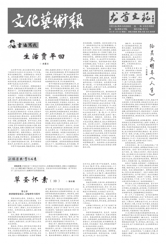 2021年2月21日(正月初十),為先生送上《文化藝術(shù)報》2月3日樣報