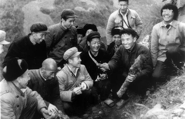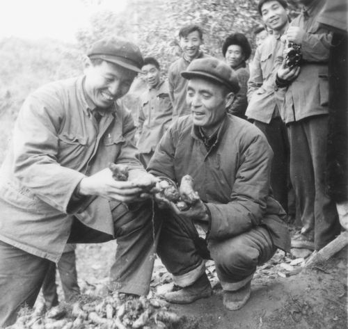 1975年,在陜西寧強(qiáng)縣東風(fēng)三隊(duì),徐錦堂與張國(guó)棟縣長(zhǎng)采挖天麻。