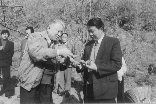 1999年,在陜西略陽(yáng)九中金鄉(xiāng),徐錦堂和縣委徐登奎書記在天麻采挖現(xiàn)場(chǎng)。