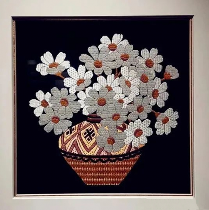 經(jīng)過數(shù)十載積累,如今的秦繡已發(fā)展出400多種針法。它不追求實物形象的“逼真”“寫實”,不模仿形式上的繪畫效果,而是展現(xiàn)其裝飾性、立體感。自幼喜愛刺繡的張漪湲,幾十年來一心撲在秦繡藝術(shù)上,先后被評為陜西省工藝美術(shù)大師、首屆中國刺繡藝術(shù)大師;2013年,秦繡(穿羅繡)被列入陜西省非物質(zhì)文化遺產(chǎn)名錄。