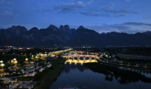 文化藝術(shù)網(wǎng)-文化藝術(shù)報(bào)訊(通訊員 黃建榮 孟釗杰)夜幕垂落,華山巨大的輪廓在天幕下化作一道沉默的剪影。山腳下,華燈綻放,流光溢彩,煙火人間正喧騰。從高空俯瞰,城市化身光影的海洋,街燈如珠鏈,車燈似流星,共同匯成一條璀璨奔騰的光之河。華燈、光影,像是躍動(dòng)的音符,共同譜寫著這座城市的夜之交響曲。