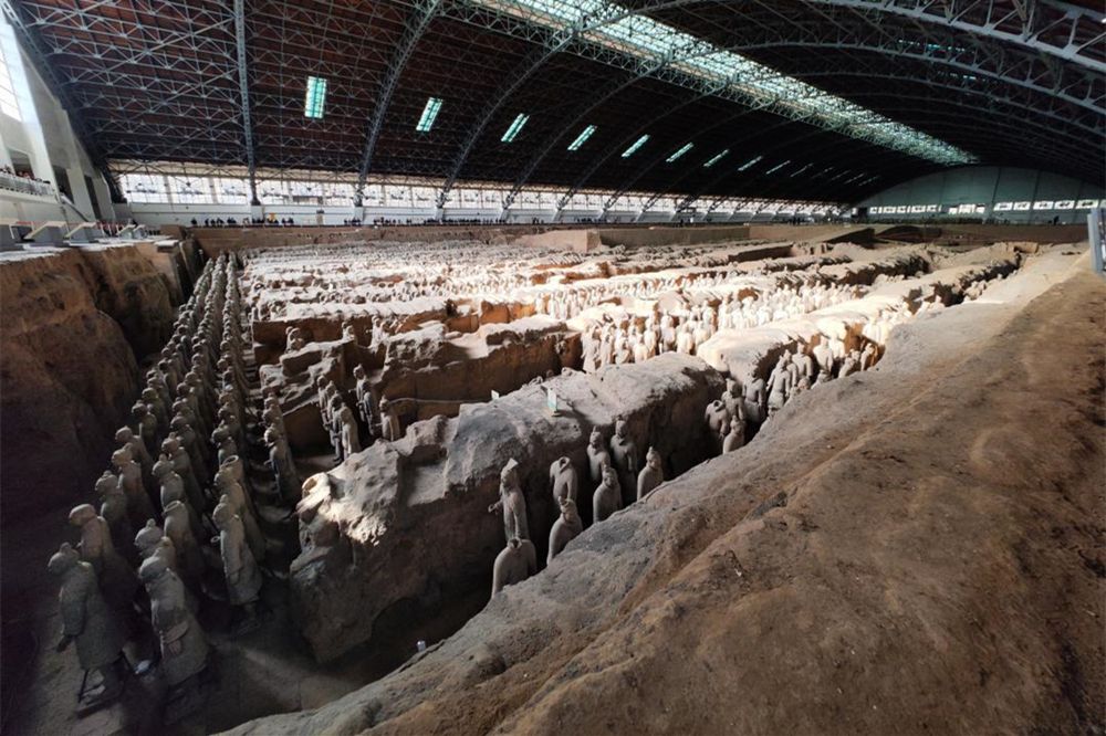 兵馬俑(秦始皇帝陵博物院供圖) 在陜西歷史博物館遍覽文物風(fēng)貌,感受撲面而來的歷史內(nèi)涵,在何家村窖藏中窺見盛唐的精致與華麗,通過壁畫展,感受大唐風(fēng)尚,欣賞大唐潮流。