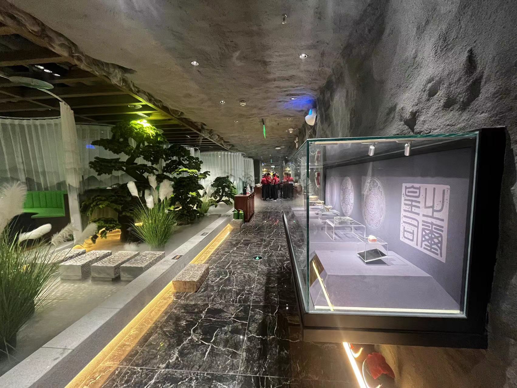 活動現(xiàn)場,陜西歷史博物館六件精品文物——開元通寶、錯金杜虎符、赤金走龍、葡萄花鳥紋銀香囊、鑲金獸首瑪瑙杯、皇后玉璽化身為六位“文物使者”,以擬人形象矗立于大廳兩側(cè),帶領(lǐng)食客步入歷史長廊!伴L安大牌檔·陜歷博文化餐廳”整體設(shè)計巧妙融入陜西歷史博物館館藏文物元素。餐廳特設(shè)陜西歷史博物館官方文創(chuàng)展示區(qū),陳列45件經(jīng)官方授權(quán)的精美文創(chuàng)產(chǎn)品,每一件均配有詳細(xì)文物介紹,食客在品味佳肴之余,能直觀感知陜西歷史的厚重底蘊。此外,餐廳設(shè)有七個以陜歷博經(jīng)典文物為主題的包間,如“錯金杜虎符”“鑲金獸首瑪瑙杯”等,每個包間均將對應(yīng)的文物元素融入空間設(shè)計,使得食客在品嘗美食的同時,仿佛穿越時空,與歷史對話,感受傳統(tǒng)文化的無盡魅力。