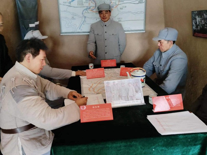 彭德懷命令電臺馬上聯(lián)系每個縱隊,由他親自布置撤退路線和集結地點。為了保證萬無一失,他特別關照一、二縱隊,集中一個團,撤離一個團;集中一個旅,撤出一個旅。彭德懷在設于蒲家窯洞的司令部里,忙著給各個縱隊下達撤退令。 天色漸暗,個別部隊的電臺仍沒有聯(lián)系上。這時,槍炮聲由遠及近,彭德懷將軍將個人的安危置之度外,邊踱著步邊說:“電報發(fā)不出去不能走!” 部屬與司令員同舟共濟。警衛(wèi)營迅即構置工事,以防不測。 彭德懷拿來警衛(wèi)員的左輪手槍,表示:“只要部隊撤出去,我個人沒什么,我還可以帶警衛(wèi)營打游擊。” 電報發(fā)出以后,彭德懷才帶領司令部向北撤離…… 講解員小郭繪聲繪色,聲情并茂地講述著彭德懷在屈家山西北野戰(zhàn)軍司令部三天四夜指揮千軍萬馬的故事。