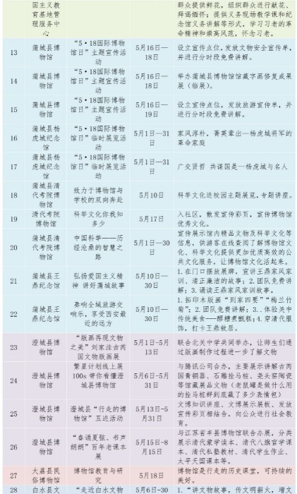 “一個(gè)博物院就是一所大學(xué)!薄2024年“5·18國(guó)際博物館日”渭南分會(huì)場(chǎng)在蒲城縣舉辦,正式啟動(dòng)“博物館月”系列宣傳活動(dòng)。隨著博物館事業(yè)持續(xù)發(fā)展,博物館教育、研究職能進(jìn)一步發(fā)揮,在促進(jìn)人的全面發(fā)展和社會(huì)全面進(jìn)步等方面的積極作用日益凸顯。 活動(dòng)時(shí)間:本次活動(dòng)將持續(xù)到5月31日 活動(dòng)主題:博物館致力于教育和研究 活動(dòng)內(nèi)容:一個(gè)主場(chǎng)、五大系列活動(dòng),內(nèi)容豐富、形式多樣的展覽和文化活動(dòng) 一個(gè)主場(chǎng) 2024年“5·18國(guó)際博物館日”渭南分會(huì)場(chǎng)活動(dòng)定于5月16日上午,在蒲城縣中心廣場(chǎng)拉開帷幕。 渭南市5·18國(guó)際博物館日主場(chǎng)活動(dòng),屆時(shí)將舉辦全市博物館高質(zhì)量發(fā)展暨“博物館月”宣傳活動(dòng)、文物保護(hù)研究中心(市縣片區(qū))揭牌、通報(bào)渭南市首屆“文保杯”文博創(chuàng)意設(shè)計(jì)大賽獲獎(jiǎng)情況并頒獎(jiǎng)、蒲城“博物館之城”建設(shè)啟動(dòng)等系列活動(dòng),配套博物館陳列、字畫修復(fù)展,非遺、文創(chuàng)展示等活動(dòng),讓公眾沉浸式感受中華優(yōu)秀傳統(tǒng)文化魅力,充分發(fā)揮博物館在以文化人、以文育人的重要作用,不斷增強(qiáng)人民群眾獲得感和幸福感,講好中國(guó)故事、傳播好渭南聲音。 五大系列活動(dòng) 1、陳列展覽(12場(chǎng),包含歷史類7場(chǎng)、紅色文化類2場(chǎng)、科普類1場(chǎng)、民俗類2場(chǎng)) 各博物館開展有關(guān)文物、歷史、文化、藝術(shù)等方面的陳列展覽,發(fā)揮博物館功能,推動(dòng)活化利用,讓文化資源更好融入百姓生活。 2、研學(xué)教育(15場(chǎng),包含歷史類9場(chǎng)、紅色文化類3場(chǎng)、非遺類3場(chǎng)) 通過館校合作、流動(dòng)博物館等豐富多元的系列活動(dòng),充分發(fā)揮博物館教育功能,增強(qiáng)優(yōu)質(zhì)文化服務(wù)供給,積極培育人民生活新風(fēng)尚。 3、“五進(jìn)”宣講(10場(chǎng),包含歷史類6場(chǎng)、紅色文化類4場(chǎng)) 博物館開展進(jìn)校園、進(jìn)社區(qū)、進(jìn)鄉(xiāng)村等“五進(jìn)”宣傳活動(dòng),傳承優(yōu)秀傳統(tǒng)文化,增進(jìn)公眾對(duì)博物館的了解,營(yíng)造全社會(huì)共同關(guān)注、參與文物保護(hù)的良好氛圍。 4、志愿服務(wù)(6場(chǎng),包含歷史類4場(chǎng)、紅色文化類2場(chǎng)) 廣泛開展“講文物故事,傳文明薪火,增文化自信”民間藏品公益鑒定咨詢,講解員志愿服務(wù),實(shí)施免費(fèi)開放,便民惠民等服務(wù)活動(dòng)。 5、文化宣傳(14場(chǎng),包含歷史類5場(chǎng)、民俗類7場(chǎng)、非遺類2場(chǎng)) 文化遺產(chǎn)既是歷史發(fā)展的見證,又是珍貴的、具有重要價(jià)值的文化資源。勤勞智慧的勞動(dòng)人民在長(zhǎng)期的生產(chǎn)生活實(shí)踐中創(chuàng)造了種類繁多、風(fēng)格獨(dú)特的非物質(zhì)文化遺產(chǎn),這些內(nèi)容豐富、雅俗共享的文化遺產(chǎn),表達(dá)了人們對(duì)美好生活的熱愛和追求。 附件:渭南市2024年“博物館月"宣傳活動(dòng)
