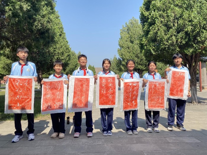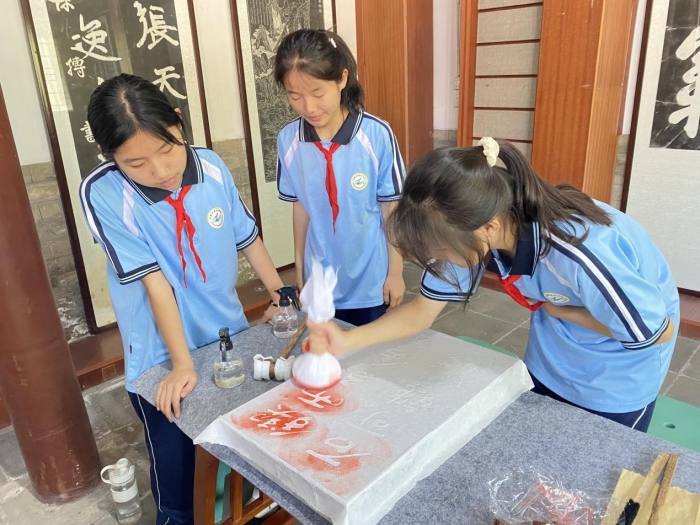 在碑石拓印研學(xué)課堂,社教老師帶領(lǐng)孩子們了解西岳廟博物館內(nèi)所藏碑石背后的故事,并傳授了古碑刻與傳拓技藝的歷史知識(shí)、制作流程與學(xué)習(xí)技巧,從洗碑、上紙、掃紙入凹、上墨到最后的揭紙,一幅幅屬于孩子們自己的拓印作品躍然紙上。拓片在動(dòng)手制作的過程中講究的是“千錘百拓”的精神,通過一次次錘拓,孩子們可以近距離感受到拓片技藝的魅力,體驗(yàn)了蘊(yùn)藏在其中的中國傳統(tǒng)文化。