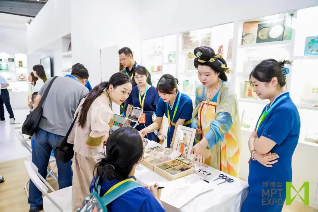 在開幕式當天,陜歷博為公眾提供武惠妃石槨線刻仕女圖DIY拼貼制作的手工體驗。該材料包依托武惠妃石槨美育課程進行設計,采用當下流行的手工拼貼方式,觀眾憑借豐富的想象力,基于簡單的材料,通過對唐代仕女圖的描繪和裝飾,能夠將厚重的歷史文物與青少年流行趨勢相結合,形成富有個性化的創(chuàng)意畫面。 除此之外,富有科技感的博物館虛擬仿真教育課程也與觀眾親切會面。課程依托豐富的館藏文物資源,以唐墓壁畫、灞橋紙、唐三彩、銅鏡等為主題,對標中小學各學科、學段知識點,深入挖掘文物內涵,利用虛擬現(xiàn)實、虛幻引擎、VR等數(shù)字技術手段,打造集真實性、互動性、趣味性于一體的虛擬仿真教育課程,讓青少年通過沉浸式、全景式、延展式、開放式的教學體驗,聆聽歷史脈搏,傳承傳統(tǒng)文化,樹立民族自豪感和文化認同感。在未來幾天的展會中,陜歷博還將提供豐富多彩的博物館教育活動體驗,等待著更多觀眾的體驗與交流。 多項數(shù)字化成果彰顯文物與科技的完美融合 圍繞此次“博博會”的“博物館高質量發(fā)展:教研并重 數(shù)實融會”這一主題,陜西歷史博物館攜手多家企業(yè)及高校,推出“古今智鑒——陜西歷史博物館數(shù)字融合體驗展覽”,并發(fā)布“博物館數(shù)字化管理與確權平臺”。文物數(shù)據(jù)管理平臺展示區(qū)、數(shù)字互動展示區(qū)、AR實景展示區(qū)及互動視頻展播區(qū)四大展臺共同構筑了陜歷博數(shù)字融合新體驗。