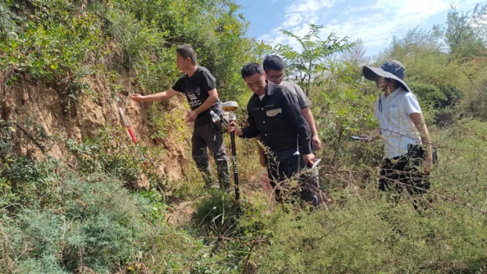 由于白水縣遺址類文物多,地形地貌復(fù)雜,工作難度大,普查隊員們付出了艱辛的努力。他們穿梭在白水縣的山川溝壑、鄉(xiāng)村田野之間,每一處古老的遺址、每一座神秘的廟宇、每一片荒蕪的山坡,都留下了他們忙碌的身影。 有時也會遇見鮮有人跡、無路可尋的情況,需要自己摸索開路,戶外地形較為復(fù)雜,腳下打滑摔跤都是常事兒。為完成文物資料的采集、復(fù)核、拍照、測量、繪圖和錄入,遇到樹木遮擋、房屋密集,測量儀器RTK無法精準定位、無人航拍機無法拍攝的情況,常常需要耗費多時才能完成一個文物的點位測量。 外在環(huán)境和條件的艱苦并未打擊普查隊員們的積極性,他們充分利用現(xiàn)代科技手段,對縣域內(nèi)不可移動文物的基礎(chǔ)信息、空間位置、保護級別、保存狀況等進行采集、復(fù)核、拍照、測量和錄入,同時積極開展走訪調(diào)研,獲取與文物相關(guān)的信息,深入挖掘文物線索,力爭做到全面核查,不漏一處。