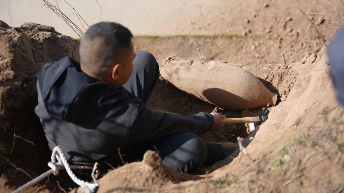 最終,經(jīng)過三個小時的采集,尖底瓶、紅陶缽采集成功,被妥善裝箱。普查隊員初步對尖底瓶進行了測量,該尖底瓶通高約70厘米,腹圍約75厘米。對于紅陶缽文物的詳細解讀,普查隊員說:“需要回去之后,進行技術(shù)修復(fù),才能給出具體參數(shù)!