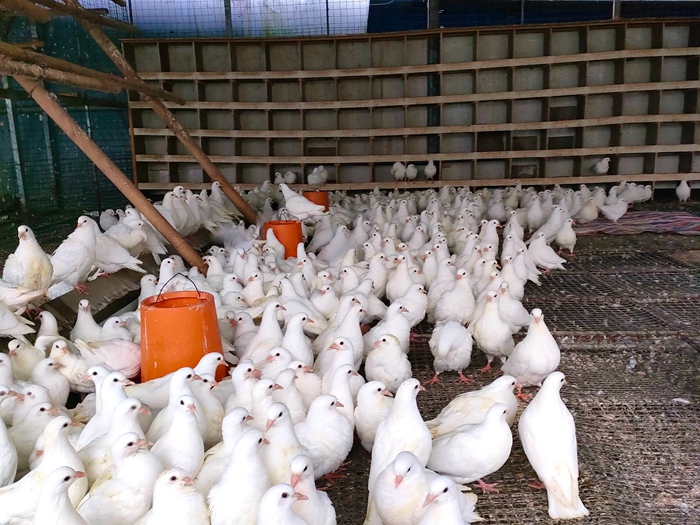 安康市平利縣老縣鎮(zhèn)木瓜溝:小鴿子唱出歡樂(lè)歌文化藝術(shù)網(wǎng)-文化藝術(shù)報(bào)訊(通訊員 程小莉 黃河)在一片咕咕聲中,筆者來(lái)到了安康市平利縣老縣鎮(zhèn)木瓜溝村的綠泰園生態(tài)農(nóng)業(yè)發(fā)展有限公司,只見(jiàn)在整齊排列的鴿籠里面,一只只渾身雪白的鴿子要么低頭進(jìn)食,要么相互低語(yǔ)。 “它們可比我嬌貴,喝的是無(wú)污染的山泉水,吃的是精選的玉米、高粱、豌豆、小麥等天然雜糧,里面還得搭配上金銀花、車(chē)前草、百穗藤等藥材!必(fù)責(zé)人冉康笑著介紹。