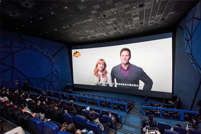 觀影開始前,《侏羅紀世界3》的主創(chuàng)團隊也跨洋給中國觀眾帶來問候:導(dǎo)演科林·特萊沃若談到中國觀眾對侏羅紀系列的熱情,表達了由衷的喜悅;侏羅紀世界系列主演克里斯·帕拉特和布萊絲·達拉斯·霍華德先表示很期待本次的史詩終章能帶大家一起踏上一段“超乎尋常、令人驚嘆的全新冒險”,“帕帕”更是秀出了自己的“中文十級”——為大家介紹了本次《侏羅紀世界3》中將要出現(xiàn)的全新恐龍,“片中有火盜龍、偷蛋龍、雙脊龍、三角龍、鐮刀龍、食肉牛龍、無齒翼龍等27種不同的恐龍出現(xiàn),其中10種恐龍是全新的!