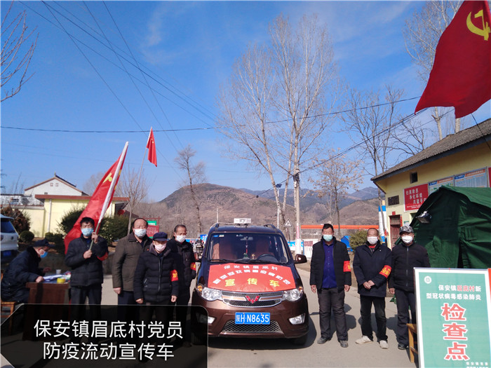 由于眉底村地處保安鎮(zhèn)東大門、沿途過往車輛以及隨行人員量大面廣,難度大、監(jiān)測難,給疫情防控工作帶來了極大的不便與困難。該村按照上級(jí)對于此項(xiàng)工作的安排部署,根據(jù)群眾居住實(shí)際情況將全村六個(gè)村民小組劃分為三個(gè)疫情防控工作小組,每個(gè)小組均有黨員干部牽頭負(fù)責(zé),這些工作小組在村黨支部的統(tǒng)一領(lǐng)導(dǎo)下,積極組織開展新型冠狀病毒感染的肺炎疫情防控工作。不論是偶爾出現(xiàn)的冬日暖陽,還是寒風(fēng)刺骨的夜晚,眉底村的疫情防控檢查站都是黨旗飄揚(yáng)喇叭響,每一位黨員胸前佩戴的黨徽熠熠生輝,沖鋒在前一線工作的共產(chǎn)黨員成了大家干好疫情防控工作的榜樣。在這里,恪盡職守的村醫(yī)認(rèn)真仔細(xì)為過往群眾測量體溫不馬虎,黨支部書記宣傳指導(dǎo)時(shí)時(shí)處處走在前;在這里,村委會(huì)房頂?shù)母咭衾妊h(huán)播放疫情防控方面的戲曲、快板、演講等群眾易于接受的廣播節(jié)目,年輕的公務(wù)員、復(fù)轉(zhuǎn)軍人和村組干部團(tuán)結(jié)一心確保防控工作無差錯(cuò)。圍繞防疫一線黨旗紅,共產(chǎn)黨員當(dāng)先鋒活動(dòng)的開展,眉底村黨支部奮進(jìn)團(tuán)結(jié),扎實(shí)有序進(jìn)行疫情防控阻擊戰(zhàn)的宣傳動(dòng)員、入戶排查、流動(dòng)廣播等黨員服務(wù)崗把黨旗插到抗疫最前沿,激發(fā)了全體疫情防控工作人員為打贏疫情防控阻擊戰(zhàn)奉獻(xiàn)一切的豪邁情懷。