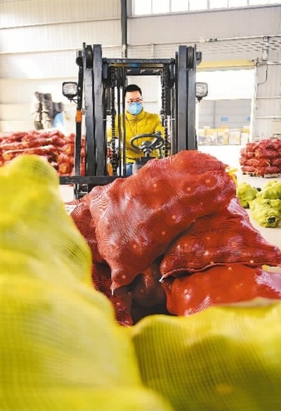 江西省贛州市會昌縣蔬菜企業(yè)工人在加緊裝運第一批100噸小南瓜,馳援湖北武漢等地的蔬菜市場。朱海鵬攝(人民視覺)