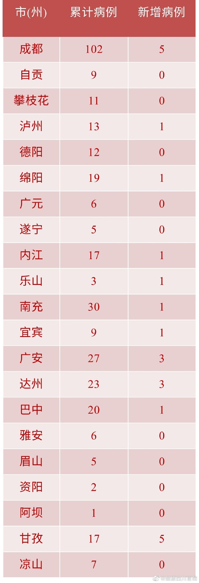 四川新型冠狀病毒肺炎新增確診病例23例,累計(jì)確診344例2月6日0-24時(shí),四川省新型冠狀病毒肺炎新增確診病例23例,新增治愈出院病例10例,無新增死亡病例。 新增確診病例中,成都市5例、甘孜州5例、廣安市3例、達(dá)州市3例、瀘州市1例、綿陽市1例、內(nèi)江市1例、樂山市1例、南充市1例、宜賓市1例、巴中市1例。