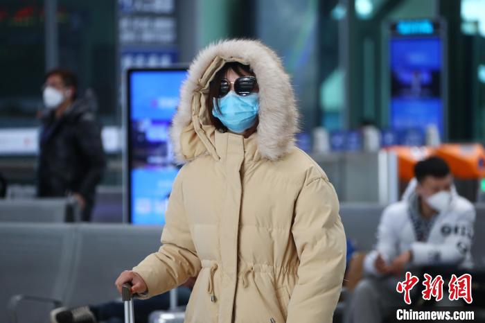 圖為一名戴著眼鏡和口罩,把自己包裹得嚴嚴實實的旅客。 劉占昆 攝
