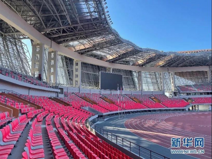 已經(jīng)完成建設(shè)的榆林市體育中心體育場(chǎng)(2021年11月25日)新華網(wǎng) 楊喜龍 攝 場(chǎng)館建設(shè)有保障 隆冬時(shí)節(jié)的塞上大地一片蕭瑟,但在運(yùn)動(dòng)員村的施工現(xiàn)場(chǎng)卻一片熱火朝天,1000多名工人仍在搶抓工期,堅(jiān)持作業(yè),為的就是確保運(yùn)動(dòng)員村如期交付使用。 這是榆林市為省十七運(yùn)會(huì)的成功舉辦配套建設(shè)的運(yùn)動(dòng)員村,也是全國首個(gè)真正意義上的省運(yùn)村。