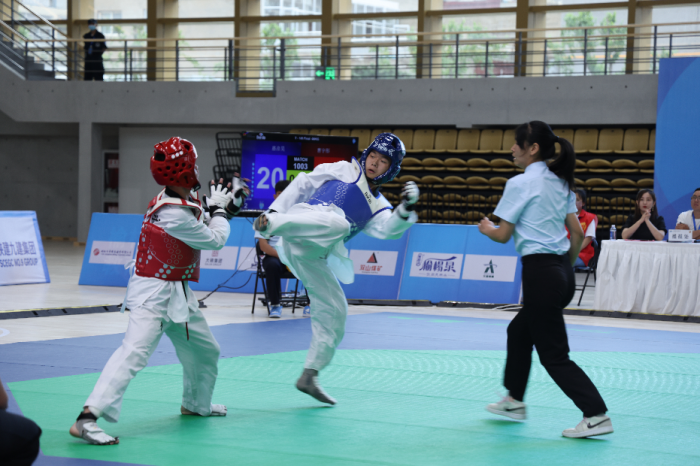 陜西省第十七屆運(yùn)動(dòng)會(huì)跆拳道測(cè)試賽圓滿結(jié)束6月26日,陜西省第十七屆運(yùn)動(dòng)會(huì)跆拳道項(xiàng)目測(cè)試賽在榆林市駝峰文體館體育館舉辦。共有來(lái)自榆林體校一隊(duì)、榆林體校二隊(duì)、榆林市跆拳道協(xié)會(huì)一隊(duì)、榆林市跆拳道協(xié)會(huì)二隊(duì)、榆林市跆拳道協(xié)會(huì)三隊(duì)5支代表隊(duì)50名運(yùn)動(dòng)員參賽。競(jìng)賽項(xiàng)目分四個(gè)級(jí)別進(jìn)行,分別為男子+58kg、-58kg,女子+55kg、-55kg。