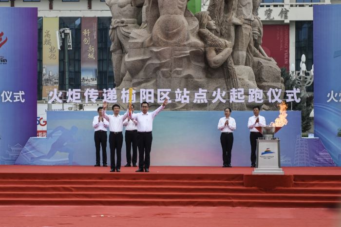 陜西省第十七屆運(yùn)動(dòng)會(huì)火炬?zhèn)鬟f首站在榆林市榆陽區(qū)舉行