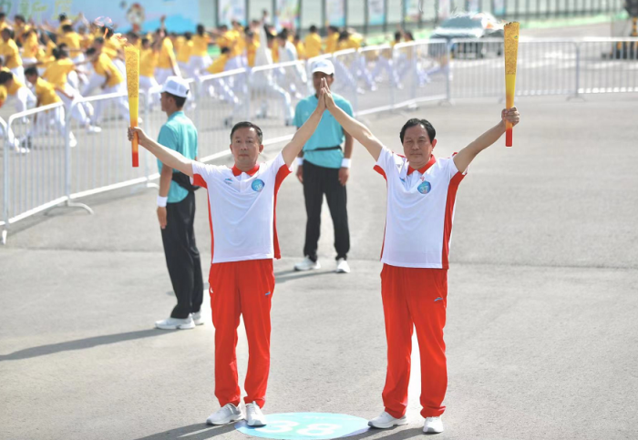 陜西省第十七屆運動會火炬?zhèn)鬟f第三站在神木市舉行文化藝術(shù)網(wǎng)-文化藝術(shù)報訊(全媒體記者 惠劉艷)省運圣火耀麟州,各界精英展風(fēng)采。7月14日上午,陜西省第十七屆運動會的昭昭圣火從駝城腳下來到窟野河畔,開啟了省十七運圣火在第三站神木市的傳遞。榆林市委常委、神木市委書記楊成林參加起跑儀式。