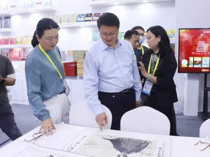 陜西省委宣傳部常務副部長王吉德翻閱集團參展圖書